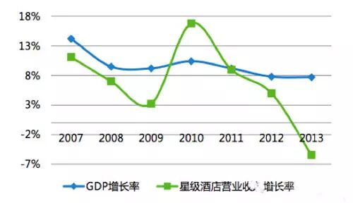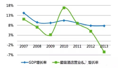 2011年后,星级酒店营业增长速度跑不赢GDP,2013年甚至出现负增长
